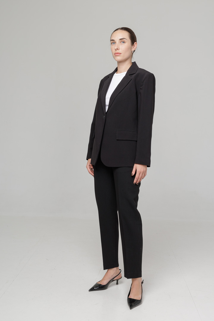 Брюки з костюмної тканини - класичний та стильний варіант для будь-якого гардеробу. Лаконічний дизайн дозволяє легко поєднувати їх як із жакетом для ділового стилю, так із більш casual верхом для щоденних луків.