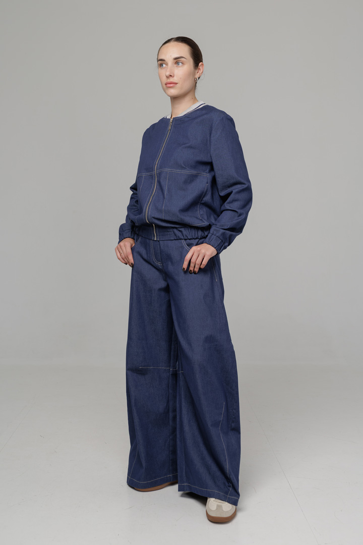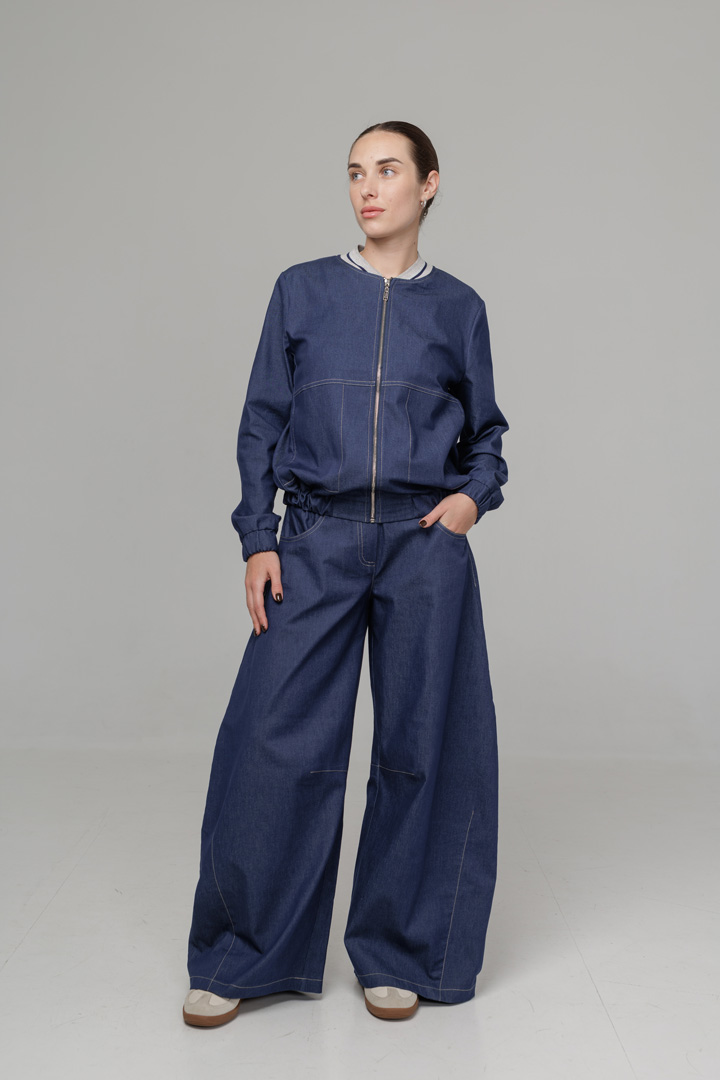 Штани широкого крою з високою посадкою та глибокими кишенями створюють ефект вільного, невимушеного силуету.