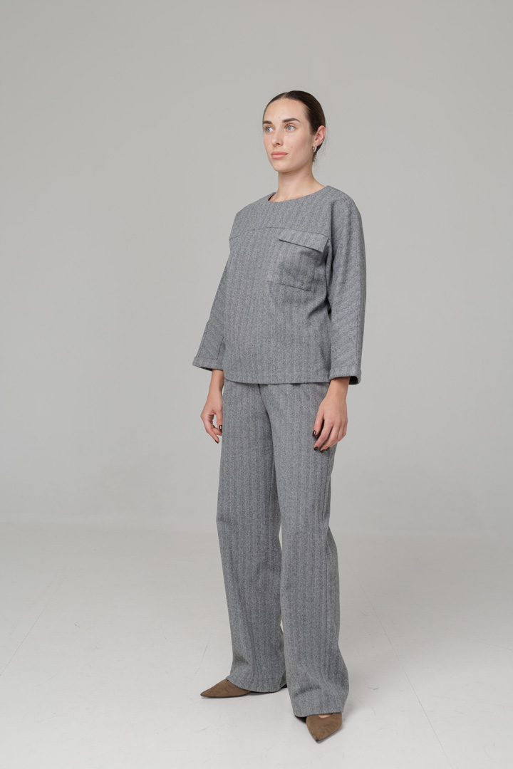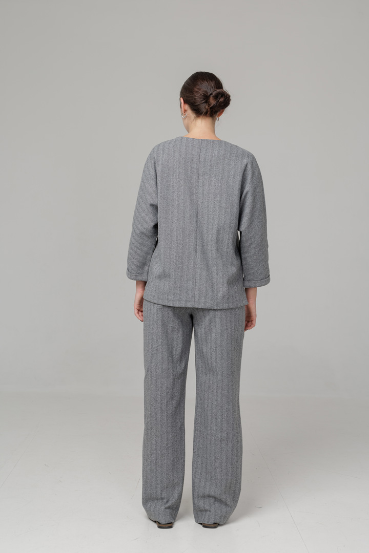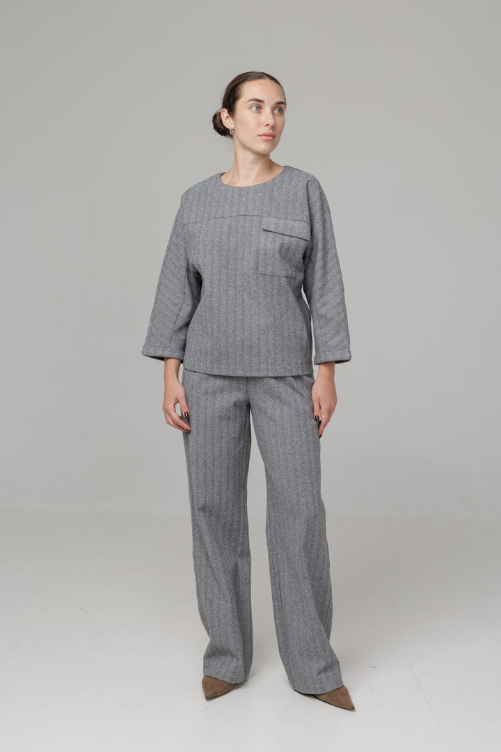 Костюм із теплого трикотажу - стильне та зручне рішення на прохолодний сезон. Брюки палаццо дарують легкість рухів і формують витончений силует. Блуза зі спущеним плечем додає образу сучасності та невимушеної елегантності. Ідеально підходить для щоденного комфорту та стильних виходів.