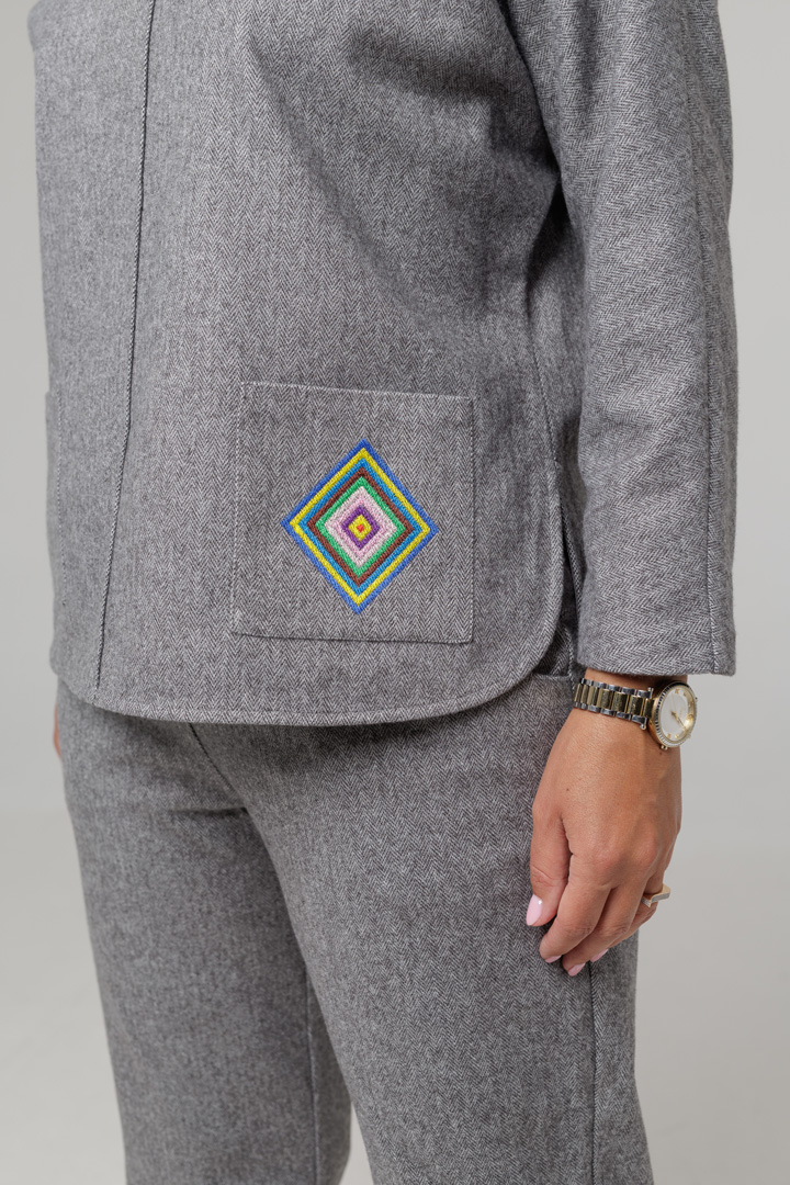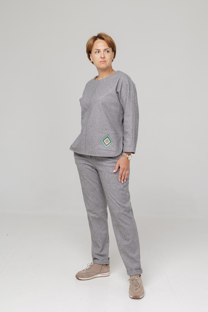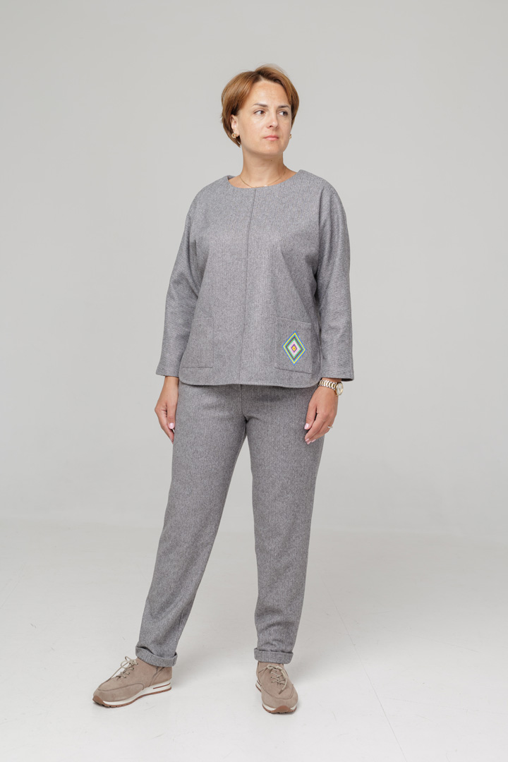 Костюм із м'якого трикотажу - це максимум затишку та комфорту в прохолодну пору. Бомбер прикрашений делікатною вишивкою, яка додає особливого шарму, а завужені штани красиво підкреслюють силует та забезпечують зручність у щоденному носінні.