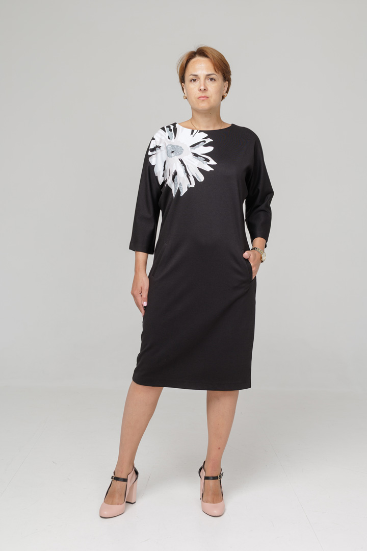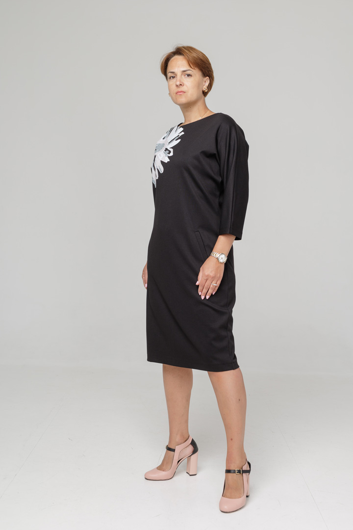 Стильна модель прямого крою поєднує комфорт трикотажної тканини та декоративну аплікацію, що додає оригінальності образу.