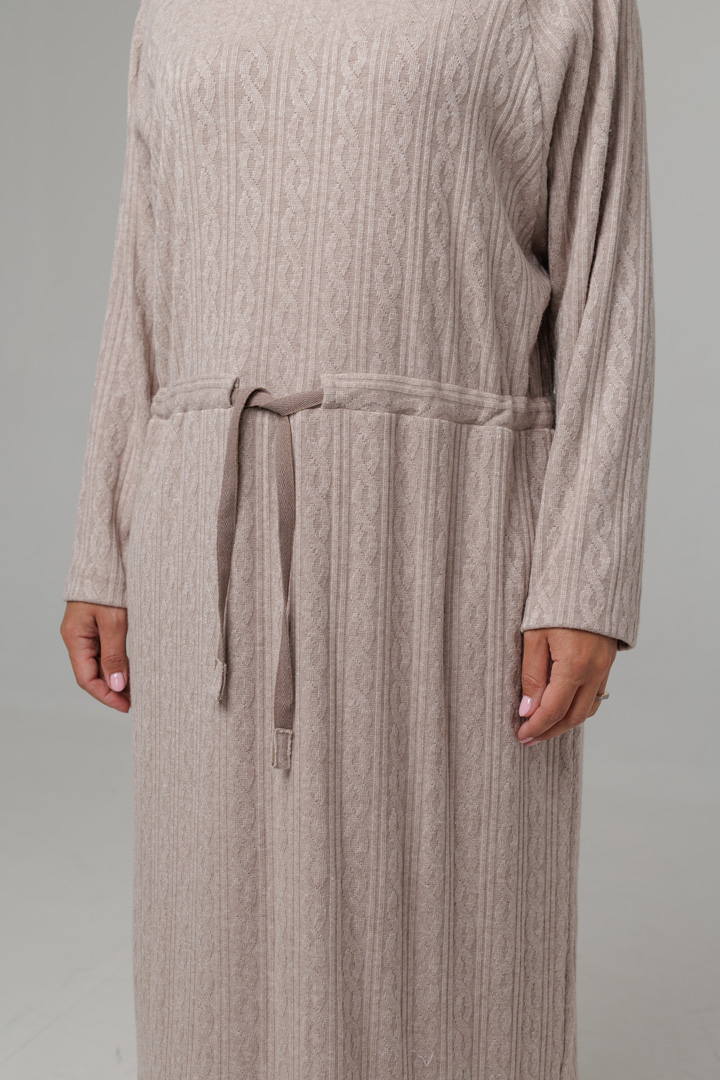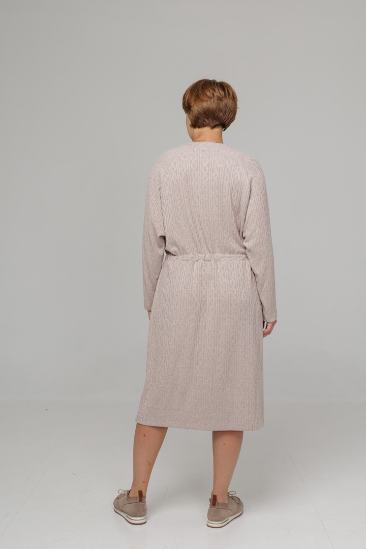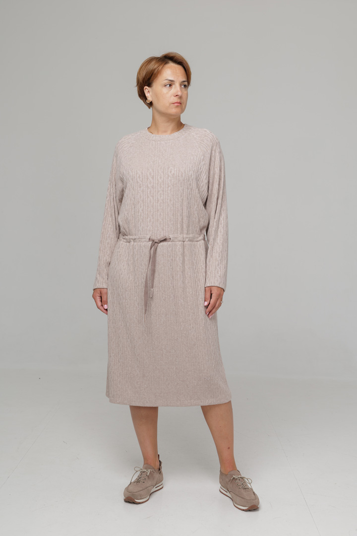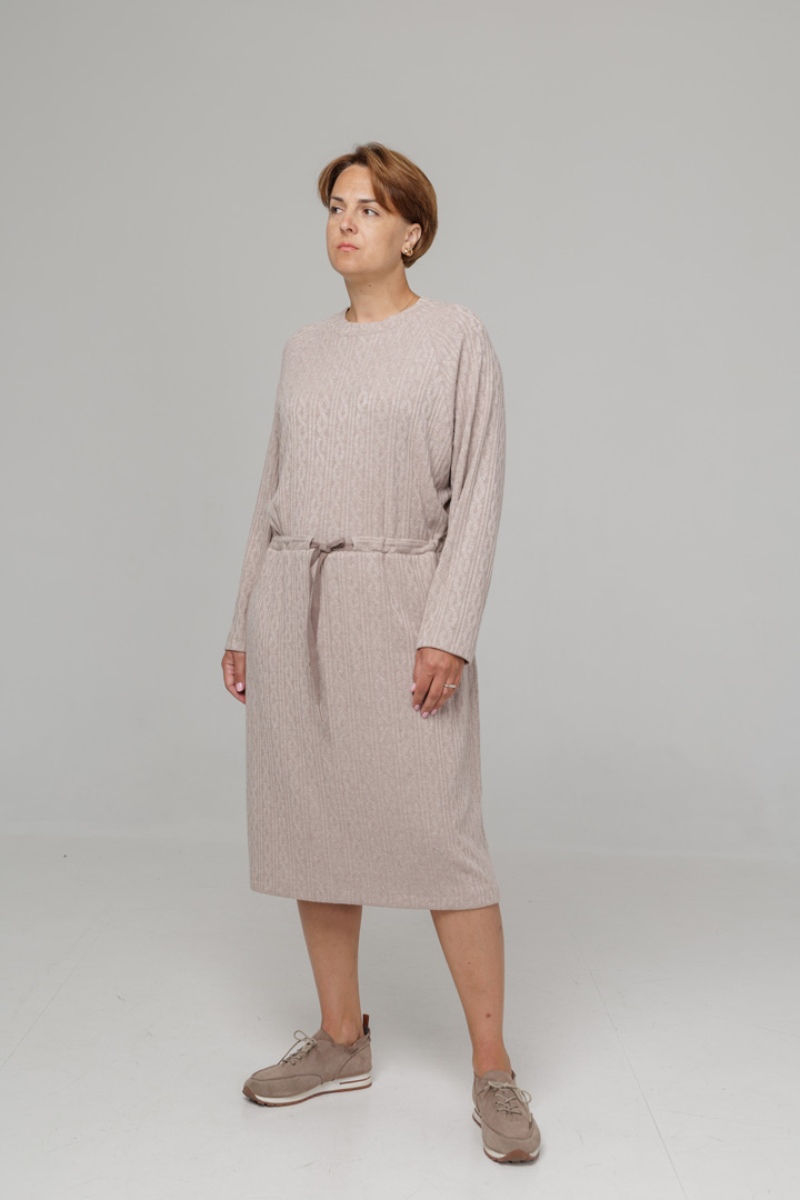 Сукня з в'язаного трикотажу - ніжна й універсальна база для осінніх образів. М'який трикотаж красиво облягає фігуру, дарує комфорт і затишок. Куліска підкреслює талію та дозволяє регулювати посадку, створюючи жіночий силует.